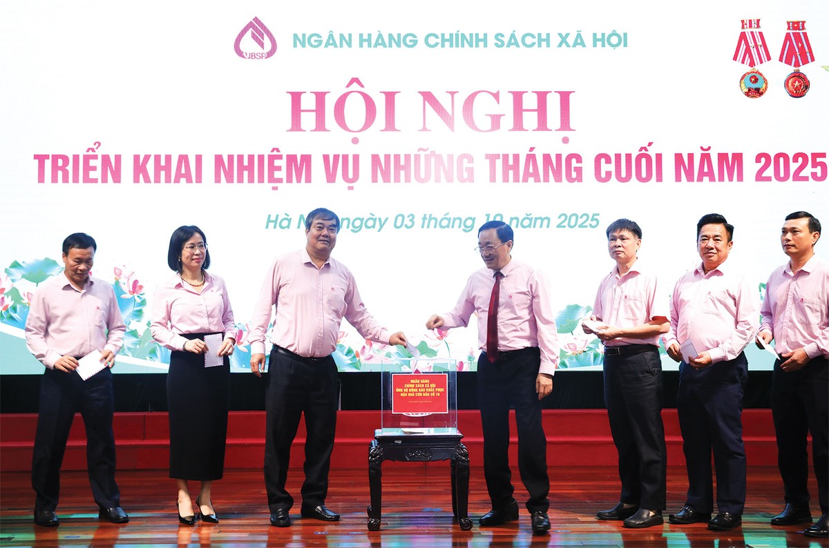 Ngày 22/10, tại trụ sở Ủy ban Trung ương Mặt trận Tổ quốc Việt Nam, Ngân hàng Chính sách xã hội đã trao số tiền 1 tỷ đồng, trích từ nguồn quyên góp của cán bộ, người lao động, để ủng hộ đồng bào các tỉnh bị thiệt hại nặng nề do bão lũ vừa qua. Phó tổng giám đốc Ngân hàng Chính sách xã hội Vương Văn Minh chia sẻ, số tiền này do cán bộ và người lao động tự nguyện quyên góp, là tình cảm, trách nhiệm và sự sẻ chia chân thành, nhằm giúp người dân vùng lũ sớm vượt qua khó khăn, mất mát để vươn lên, ổn định cuộc sống.