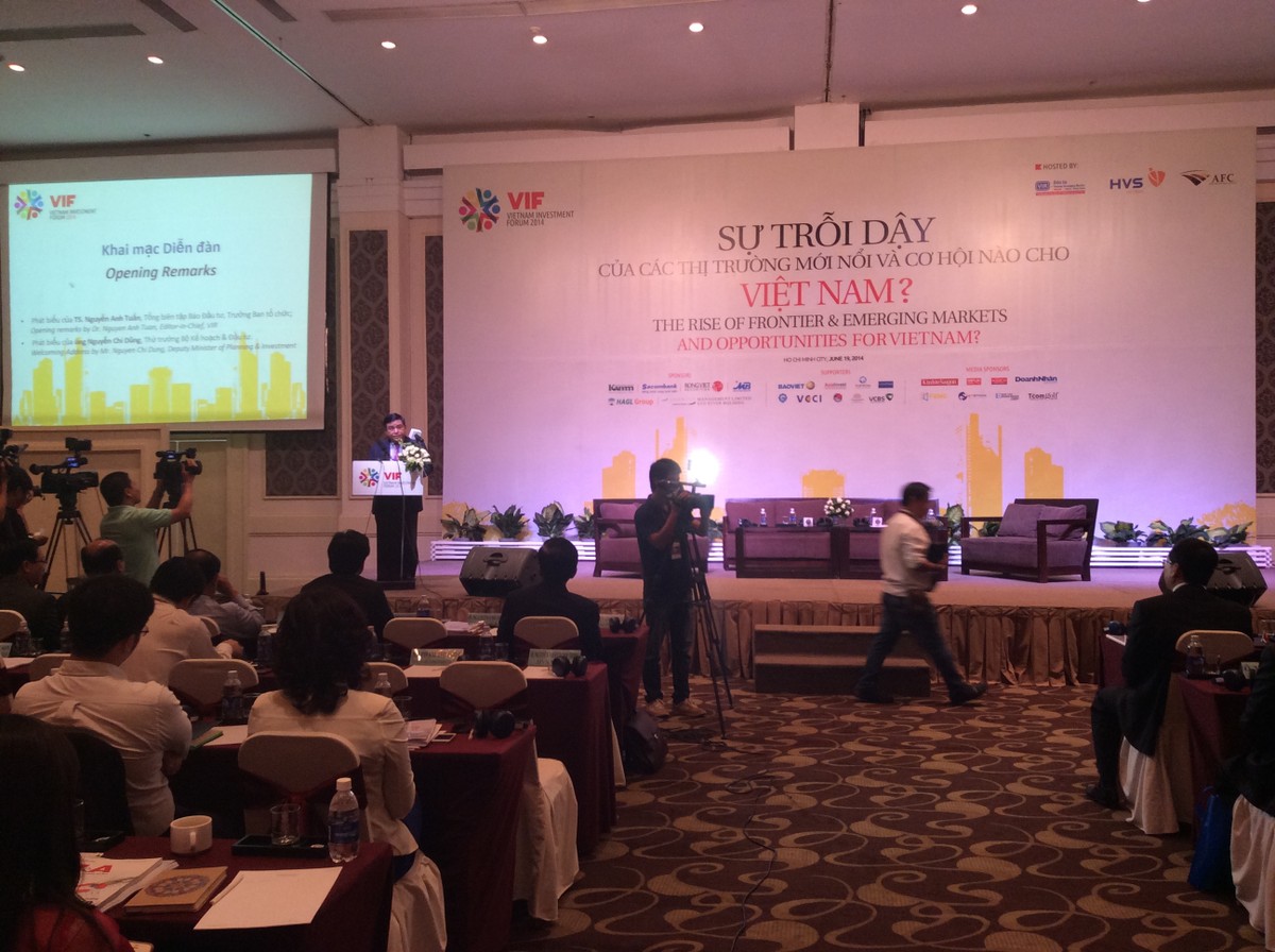 8h, Phát biểu tại phiên khai mạc Diễn đàn đầu tư Việt Nam 2014 với chủ đề “Sự trỗi dậy của các thị trường mới nổi và cơ hội nào cho Việt Nam?” TS. Nguyễn Anh Tuấn, Tổng biên tập Báo Đầu tư, Trưởng ban tổ chức diễn đàn chia sẻ, diễn đàn này là không gian để các chuyên gia, các nhà quản lý và các doanh nghiệp hàng đầu gặp gỡ, thảo luận về những vấn đề kinh tế tài chính toàn cầu về sự trỗi dậy của các thị trường mới nổi cũng như triển vọng phát triển kinh tế và cơ hội đầu tư tại Việt Nam.