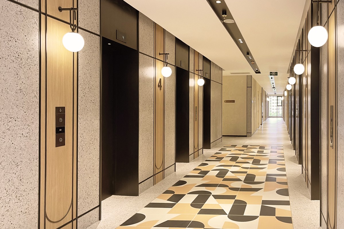 Sảnh thang máy với số lượng thang nhiều, tỷ lệ “vàng” chỉ 2 đến 2.5 căn/thang cho mỗi tầng, cư dân không phải chờ đợi