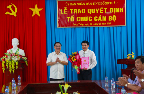 Chiều 22/10, đồng chí Nguyễn Thanh Hùng, Phó Chủ tịch Ủy ban nhân dân tỉnh Đồng Tháp đã trao quyết định của Chủ tịch Ủy ban nhân dân tỉnh về việc điều động và bổ nhiệm đồng chí Huỳnh Văn Nguyên, Trưởng phòng Phòng Kinh tế ngành thuộc Văn phòng Ủy ban nhân dân tỉnh giữ chức Phó Giám đốc Sở Tài nguyên và Môi trường tỉnh Đồng Tháp, kể từ ngày 1/11/2018.