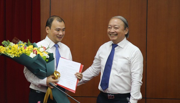 Phó Trưởng Ban Tuyên giáo Trung ương Võ Văn Phuông trao quyết định cho đồng chí Lê Hải Bình.