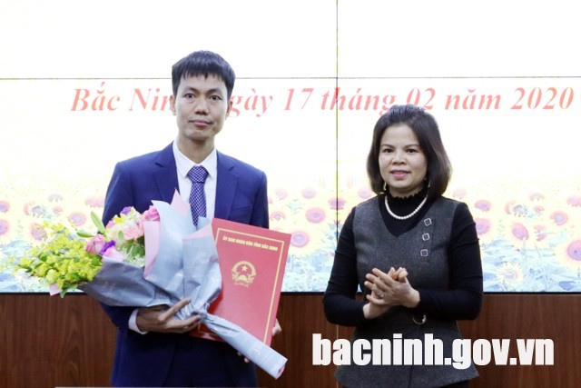 * Cùng ngày (17/2), Chủ tịch UBND tỉnh Bắc Ninh Nguyễn Hương Giang đã trao quyết định của UBND tỉnh Bắc Ninh bổ nhiệm đồng chí Nguyễn Minh Vũ giữ chức Phó Giám đốc Sở Thông tin và Truyền thông tỉnh Bắc Ninh, thời hạn bổ nhiệm là 5 năm.