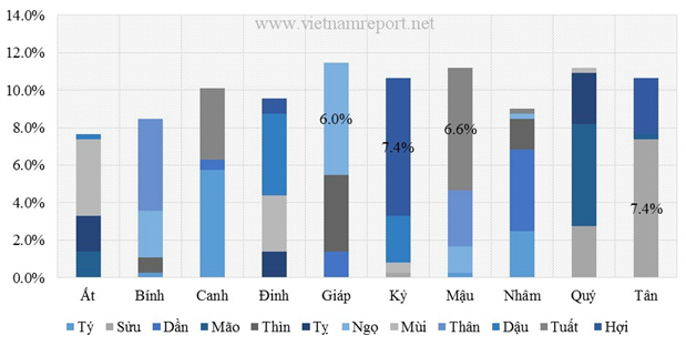 Thống kê dữ liệu về tên và tuổi của CEO các doanh nghiệp VNR500 (500 doanh nghiệp có doanh thu lớn nhất Việt Nam) của Vietnam Report cho thấy, số lượng CEO sinh năm 1959 (Kỷ Hợi) và sinh năm 1961 (tuổi Tân Sửu) là chiếm tỷ trọng lớn nhất, tương ứng mỗi nhóm chiếm 7,4% toàn bảng xếp hạng.