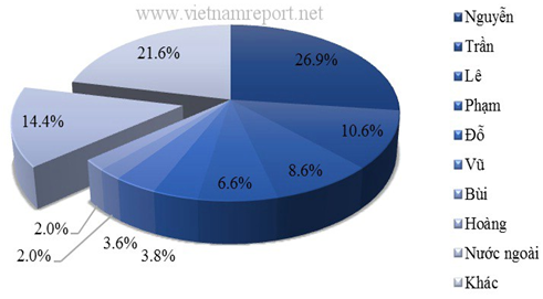 Họ Nguyễn, Trần "áp đảo" trong cơ cấu họ của CEO các doanh nghiệp VNR500 năm 2013.