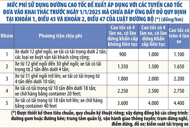 Theo thông tin của Báo Đầu tư, Cục Đường bộ Việt Nam đã đề xuất chọn phương án cao cho các tuyến cao tốc đáp ứng quy chuẩn, tiêu chuẩn và chọn phương án thấp cho các tuyến cao tốc vào khai thác trước ngày 1/1/2025 mà chưa đáp ứng đầy đủ quy định.