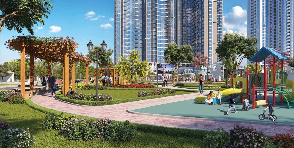 Bên trong là công viên Eco-Green Central Park 3,5ha mang đến không gian sống xanh, trong lành