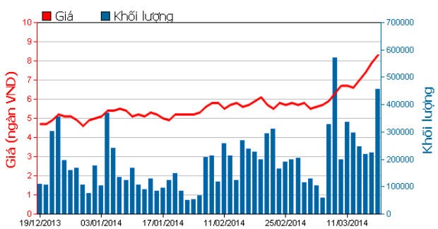 Trong 3 tháng qua (từ 18/12/2013 đến 18/12/2014), cổ phiếu DLG đã tăng rất mạnh từ 4.600 đồng lên 8.300 đồng, tương ứng mức tăng 80,43%. Thanh khoản theo đó cũng ở mức cao, bình quân mỗi phiên giao dịch khoảng 2 triệu đơn vị.