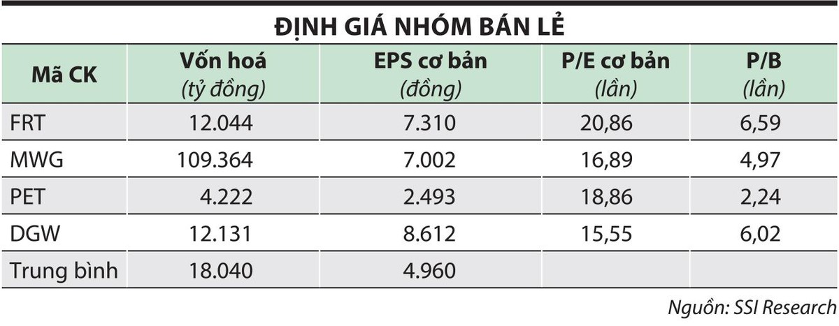 Nhìn chung, sau một năm hưởng lợi và có kết quả kinh doanh khả quan, nhóm cổ phiếu bán lẻ, phân phối đồ công nghệ, điện tử đang giao dịch vùng định giá cao trong nhiều năm trở lại đây.