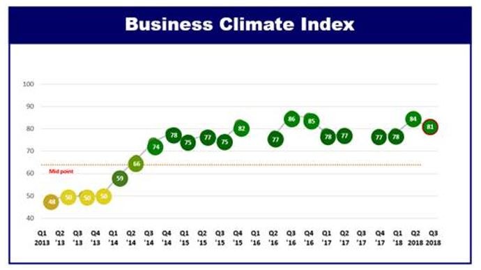 Chỉ số BCI thể hiện niềm tin vào môi trường thương mại và đầu tư của Việt Nam, hiện tại ở mức 81 điểm, là kết quả cao thứ nhì kể từ cuối năm 2016. Mặc dù có sự sụt giảm nhẹ so với quý II- mức cao nhất trong 18 tháng qua, cảm quan kinh doanh của doanh nghiệp châu Âu trong quý III vẫn tích cực.