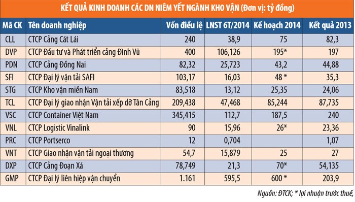 Hay CTCP Logistic Vinalink (VNL) đạt 15,963 tỷ đồng lợi nhuận trong 6 tháng, trong khi cùng kỳ năm 2013 đạt 12,527 tỷ đồng.