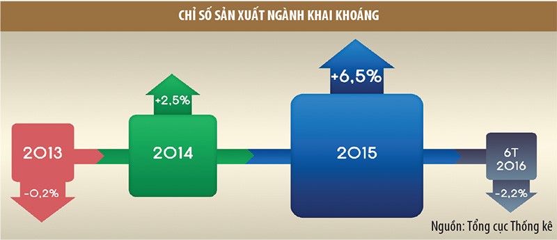 Nhiều doanh nghiệp gặp khó về đầu ra, dẫn tới mất thanh khoản, buộc phải cắt giảm lương, giảm số lượng lao động. Dữ liệu của Tổng cục Thống kê cho thấy, năm 2015, số lao động làm việc trong các doanh nghiệp khai khoáng giảm 1,4% so với cùng kỳ năm 2014; 6 tháng đầu năm 2016, con số này giảm 3,6% so với cùng kỳ năm 2015. Trước đó, từ năm 2012, số lượng lao động tại các doanh nghiệp nhóm này đã có một đợt sụt giảm mạnh.