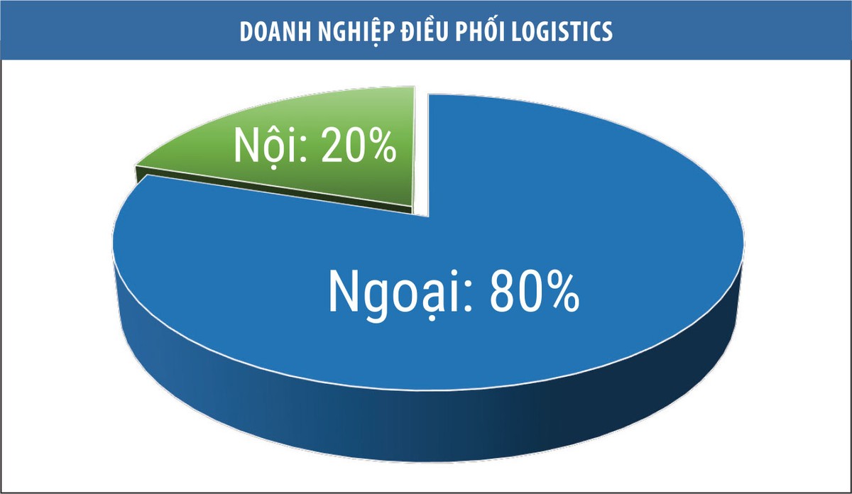 Ông Hiệp nhấn mạnh, điều đáng nói là có gần 70% doanh nghiệp logistics Việt Nam thuộc loại không tài sản, việc đầu tư trang thiết bị, phương tiện vận tải chỉ khoảng 16% và khoảng 4% về kho bãi, cảng, còn lại phải đi thuê ngoài.