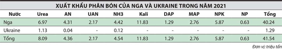 Thị trường phân bón toàn cầu càng trở nên căng thẳng hơn kể từ khi xung đột Nga và Ukraine xảy ra vào cuối tháng 2 năm nay, hai quốc gia xuất khẩu phân bón lớn trên thế giới cũng như là nguồn cung quan trọng các nguyên liệu đầu vào cho sản xuất phân bón trên thế giới, dẫn đến giá phân bón tăng chóng mặt, lên mức cao nhất trong vòng nửa thế kỷ qua.