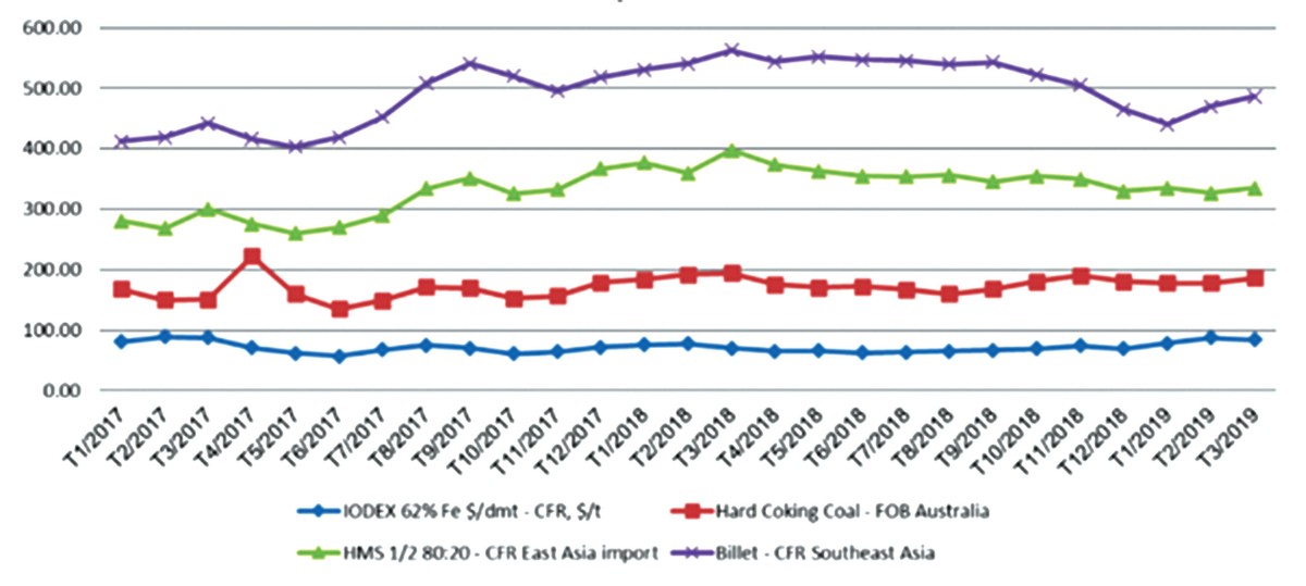 Diễn biến giá một số nguyên vật liệu sản xuất thép (Nguồn: VSA).