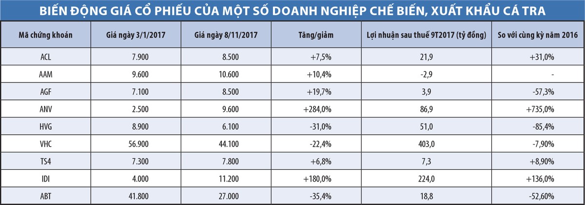 Công ty cổ phần Nam Việt (ANV, sở hữu hơn 90% cổ phần tại Biển Đông Seafood) cũng đạt kết quả kinh doanh khả quan trong 9 tháng đầu năm, với 2.102 tỷ đồng doanh thu, gần 87 tỷ đồng lợi nhuận sau thuế, hoàn thành lần lượt 70% và 81% chỉ tiêu kế hoạch cả năm.