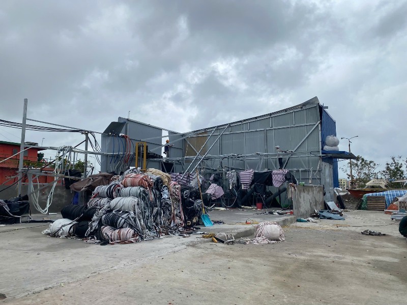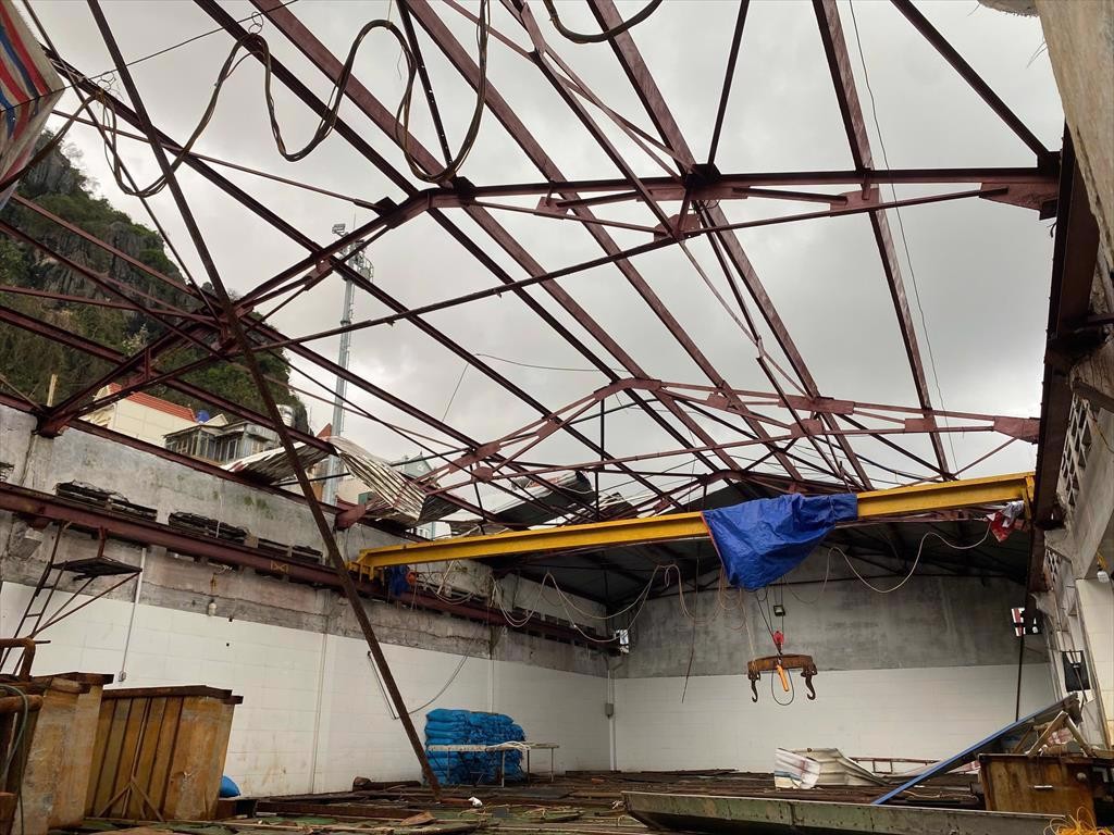 Tại Công ty cổ phần Xuất nhập khẩu thủy sản Quảng Ninh, ông Đỗ Quang Sáng, Chủ tịch HĐQT kiêm Tổng giám đốc cho biết, xưởng sản xuất của công ty bị bay một phần mái tôn, xưởng đá bị bay hoàn toàn mái tôn, bị lật 400-500 m2 mái tôn.