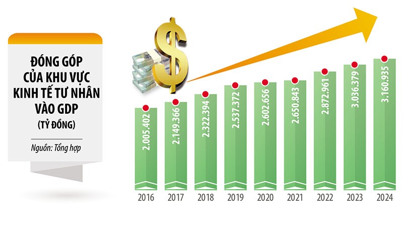Sau gần 40 năm đổi mới, kinh tế tư nhân nước ta đã từng bước phát triển cả về số lượng và chất lượng, trở thành một trong những động lực quan trọng của nền kinh tế. Ảnh: Đức Thanh. Đồ họa: Đ.N |