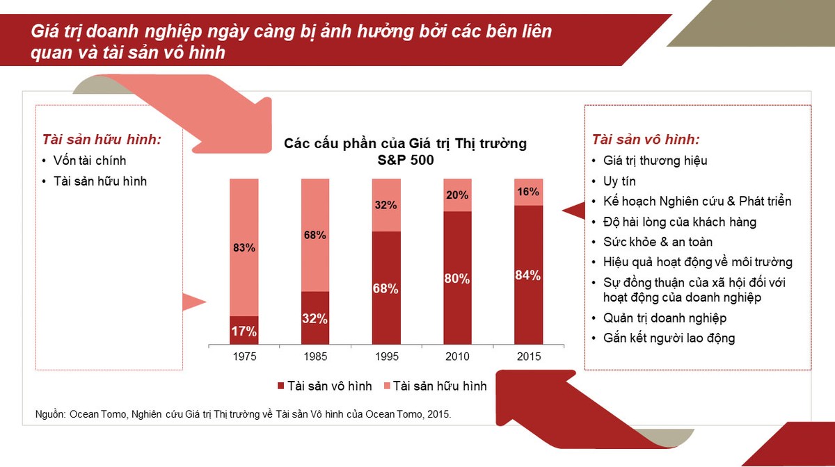 Ông có thể chia sẻ về xu hướng ảnh hưởng của các tài sản vô hình và các giá trị phi tài chính lên giá trị doanh nghiệp?