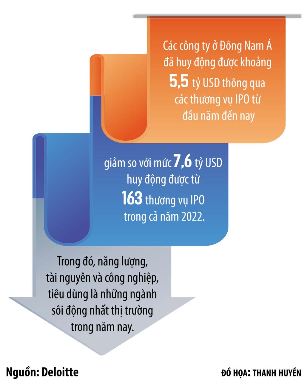 Bà Tay Hwee Ling, phụ trách dịch vụ IPO thị trường Đông Nam Á và Singapore của Deloitte chia sẻ, Đông Nam Á không phải là khu vực duy nhất đối mặt với thách thức duy trì một thị trường vốn cổ phần sôi động và hấp dẫn. Trên toàn cầu, số lượng IPO và số vốn IPO huy động đã trở lại mức trước Covid-19. Điều này được thúc đẩy bởi xu hướng các công ty muốn duy trì hình thức sở hữu tư nhân lâu hơn, gần đây là để ứng phó với môi trường kinh tế vĩ mô toàn cầu và tình hình lãi suất đầy thách thức.