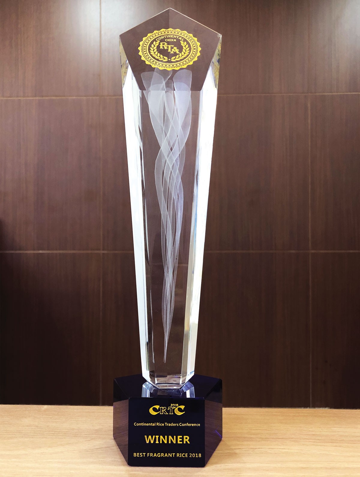 Chiếc Cúp và Giấy chứng nhận giống gạo thơm Lộc Trời 28 đạt giải nhất ở phân khúc gạo thơm do Hiệp hội Gạo Năm Châu, Quảng Đông - Trung Quốc trao tặng.