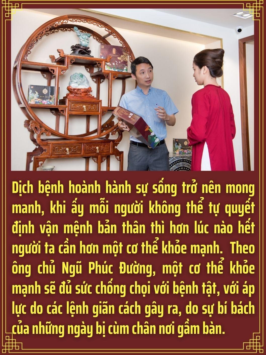 Tuy vậy, không có nghĩa chúng tôi không hướng tới kinh doanh online. Qua thời gian, đủ độ chín, khi thương hiệu Ngũ Phúc Đường được công nhận thì kênh trực tuyến vẫn là một vũ khí không thể bỏ qua. Nhưng tôi cũng cho rằng đây chỉ là một trong các kênh tiếp cận khách hàng của Ngũ Phúc Đường.
