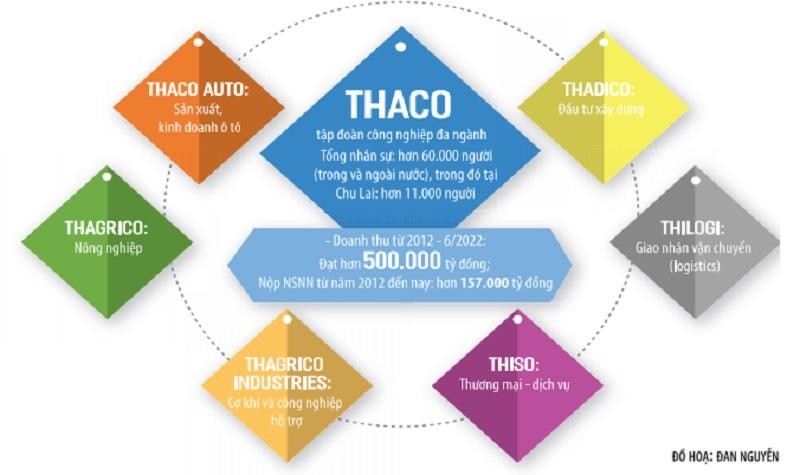 Ngoài Thaco Auto đang đảm trách hoạt động sản xuất và kinh doanh ô tô của các nhãn hàng trên, Thaco Industries đã được thành lập nhằm đáp ứng xu hướng dịch chuyển đầu tư chuỗi cung ứng toàn cầu trong bối cảnh hội nhập.