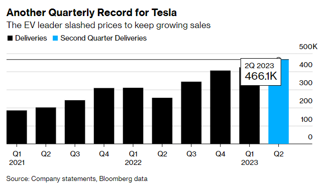 Đà tăng vọt về doanh số của Tesla là kết quả của việc giảm giá để thúc đẩy bán hàng. Các chuyên viên phân tích tham gia cuộc thăm dò của Bloomberg dự báo doanh số của Tesla là 448.350 chiếc.