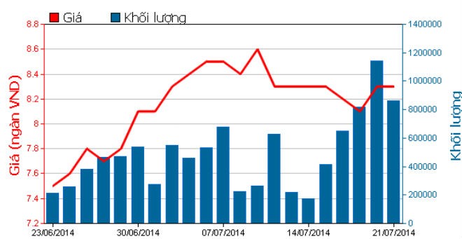 Đóng cửa phiên 21/7, cổ phiếu HQC đứng giá 8.300 đồng/CP, nhưng được giao dịch mạnh với hơn 8,6 triệu đơn vị khớp lệnh. Trong một tháng qua, giá cổ phiếu này tương đối ổn định, nhưng khối lượng giao dịch lại biến động mạnh theo chiều hướng tăng, nhất là trong tuần giao dịch vừa qua.