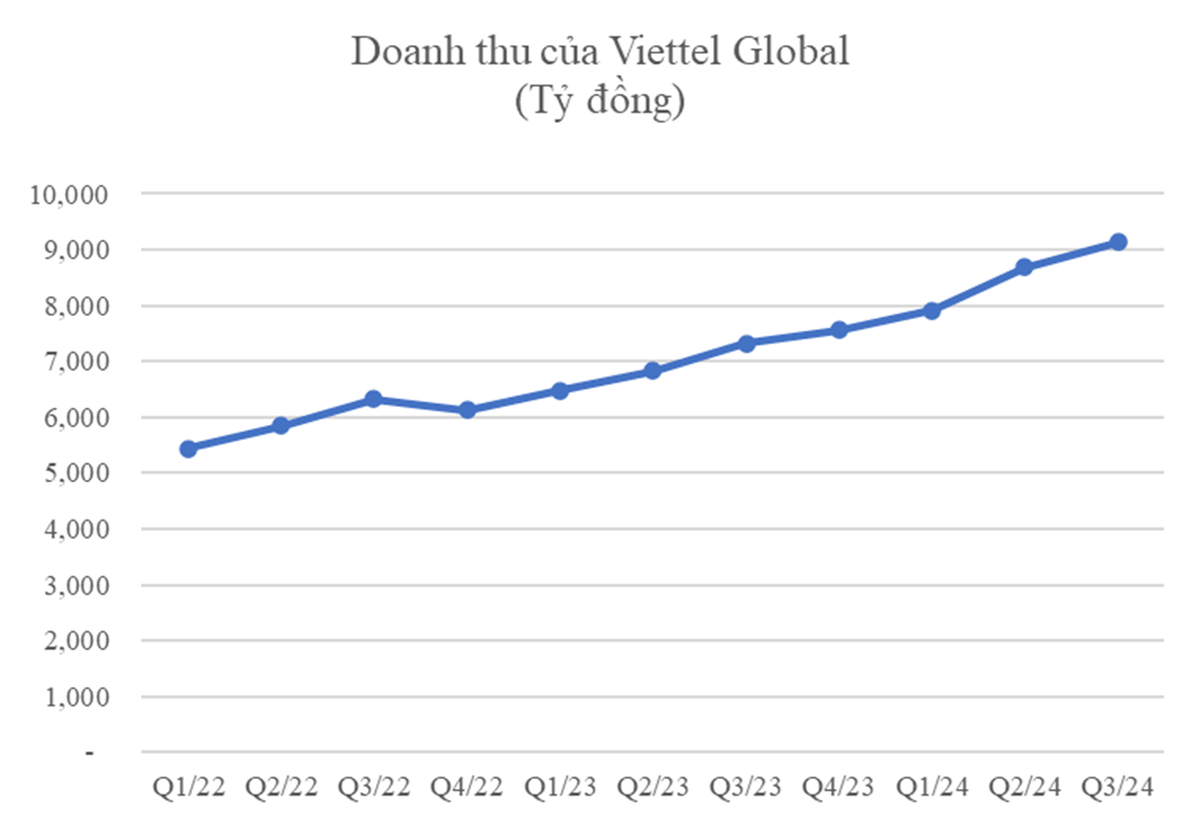 Lũy kế 9 tháng đầu năm 2024, Viettel Global doanh thu đạt 25.724 tỷ đồng – tăng trưởng 25%, lợi nhuận trước thuế đạt 6.037 tỷ đồng – tăng trưởng 162% và lợi nhuận sau thuế đạt 3.477 tỷ đồng – tăng trưởng 343% so với 9 tháng đầu năm 2023.