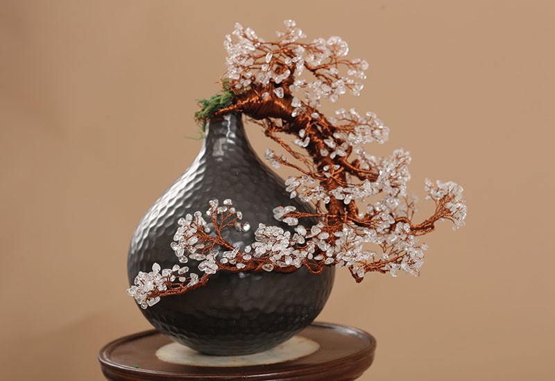 Điểm đặc biệt khác của sản phẩm cây đá Moontree.shop là các sản phẩm đều được làm thủ công một cách tỉ mỉ. Với sự tài hoa của mình, những người thợ Moontree.shop tiến hành xâu từng hạt đá vào dây đồng từng sợi một, sau đó quấn vào nhau và tạo hình dáng cây.