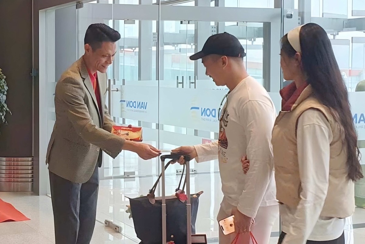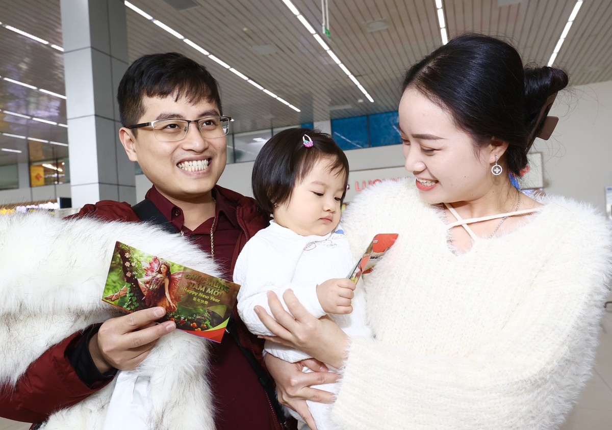 Tại Vân Đồn, Quảnh Ninh sáng nay cũng đón chào những vị khách đầu tiên trên chuyến bay Vietjet đến "xông đất" năm Ất Tỵ, hứa hẹn một năm mới tốt đẹp cho ngành hàng không, du lịch.