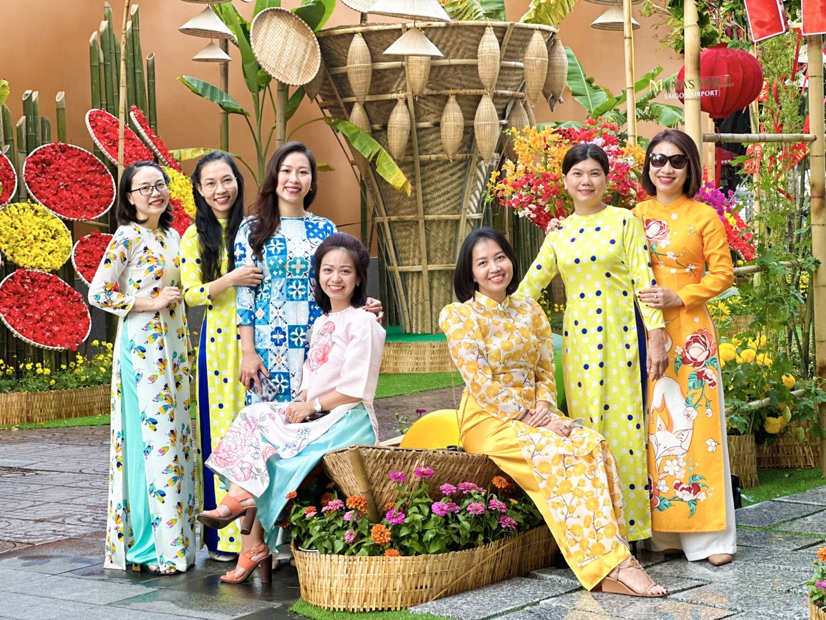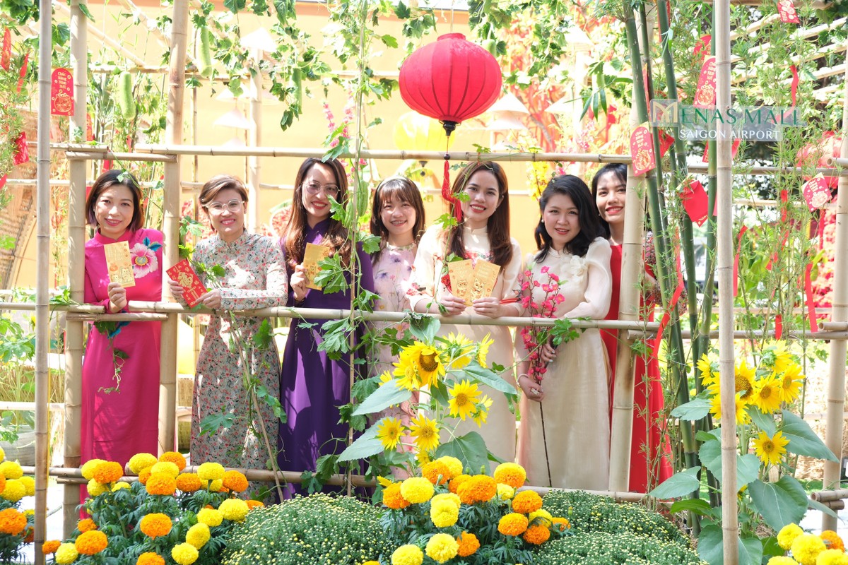 Đặc biệt, hình ảnh con đường làng đầy sắc màu đang uốn lượn; thấp thoáng những mái nhà tranh thơm nức mùi đồng quê để mỗi người được hoà mình giữa không gian quê hương đầy thân thương & ấm áp. Đường hoa Amazing Tết 2023 được chia thành các khu, kéo dài từ mặt đường Trường Sơn đến hết cổng Hồng Hà của tòa nhà Menas.