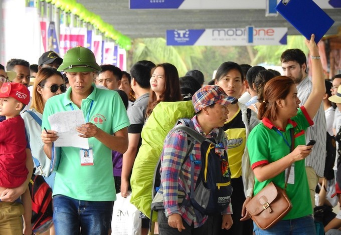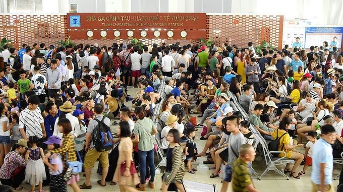 Từ sám sớm 30/4, Cảng tàu khách quốc tế Tuần Châu ken đặc người. Kỳ nghỉ lễ năm nay kéo dài 4 ngày, tuy nhiên trong hai ngày đầu nghỉ lễ đã có hàng chục nghìn người tham quan vịnh Hạ Long, phần lớn là khách nội địa. Sáng thứ ba của kỳ nghỉ trời có mưa nhẹ, nhưng sang buổi chiều trời nắng đẹp.