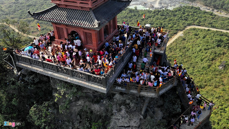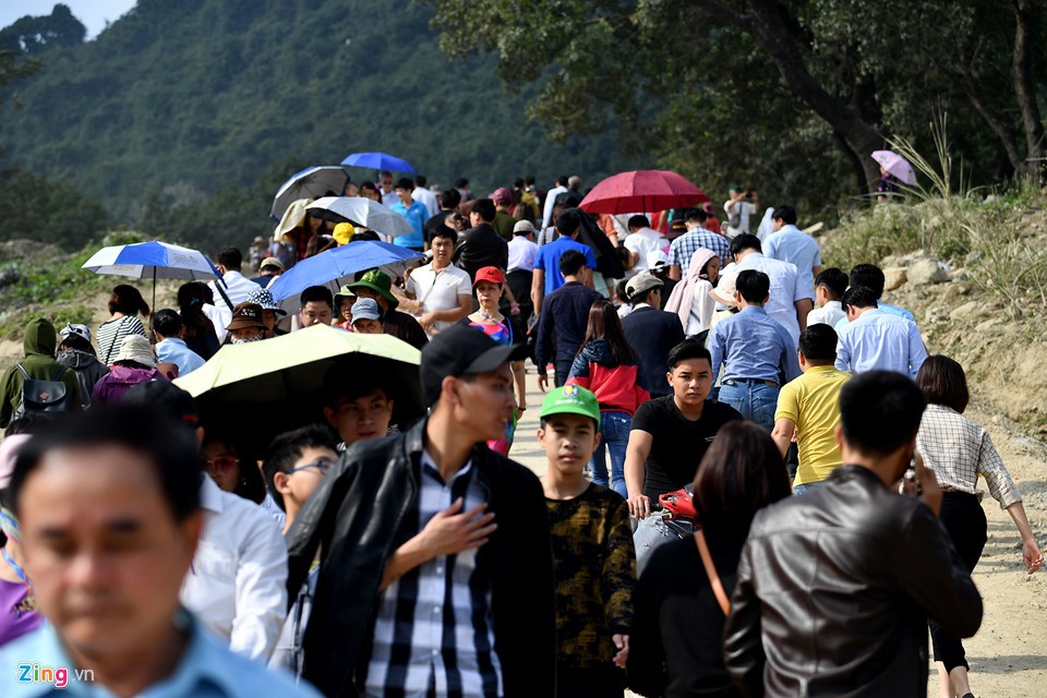 Càng về trưa, lượng người đổ lên chùa càng đông. Ước tính con số du khách trong buổi sáng khoảng 10.000 lượt.
