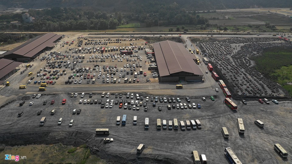 Sáng 9/2 (mùng 5 Tết), hàng trăm chiếc ôtô và hàng nghìn xe máy được gửi tại bãi cách ngôi chùa này khoảng 3 km.