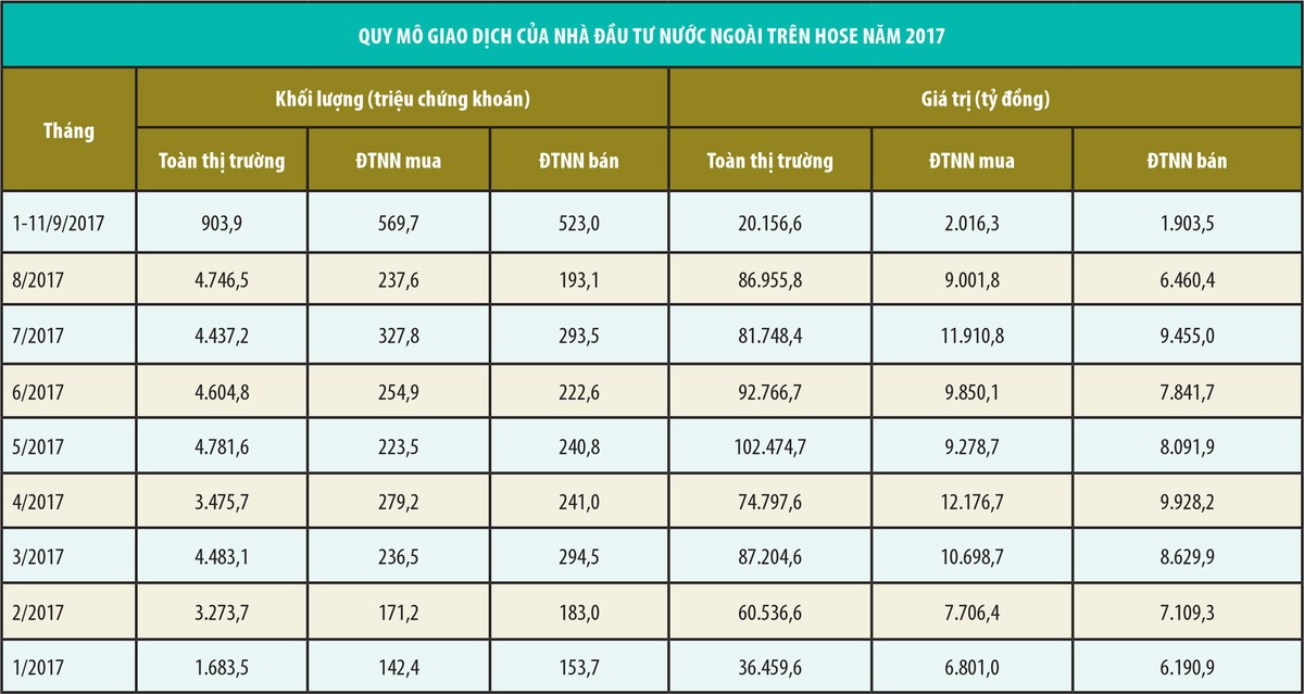 Năm nay, thị trường chứng khoán có diễn biến khả quan, nhà đầu tư nước ngoài liên tục có động thái mua ròng. Bên cạnh đó, số lượng nhà đầu tư nước ngoài mở tài khoản giao dịch chứng khoán gia tăng, dòng tiền đổ vào các quỹ đầu tư cũng gia tăng.