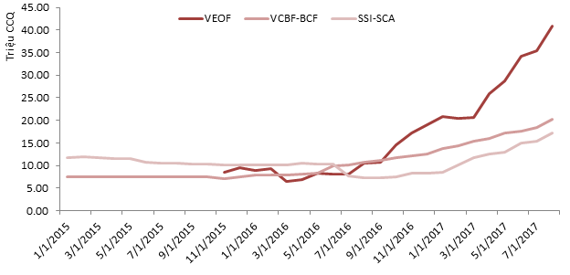 Số lượng CCQ đang lưu hành của một số quỹ mở. Nguồn: Các quỹ mở