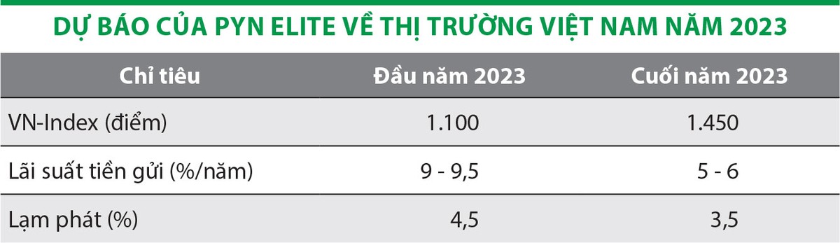 PYN Elite cho rằng, năm 2023, kinh tế Việt Nam sẽ tăng trưởng khoảng 5,5%, ngay cả khi xuất khẩu suy giảm. Nguồn lực đầu tư công sẽ thúc đẩy nhu cầu nội địa và thị trường tiêu dùng cá nhân tạo động lực cho tăng trưởng.