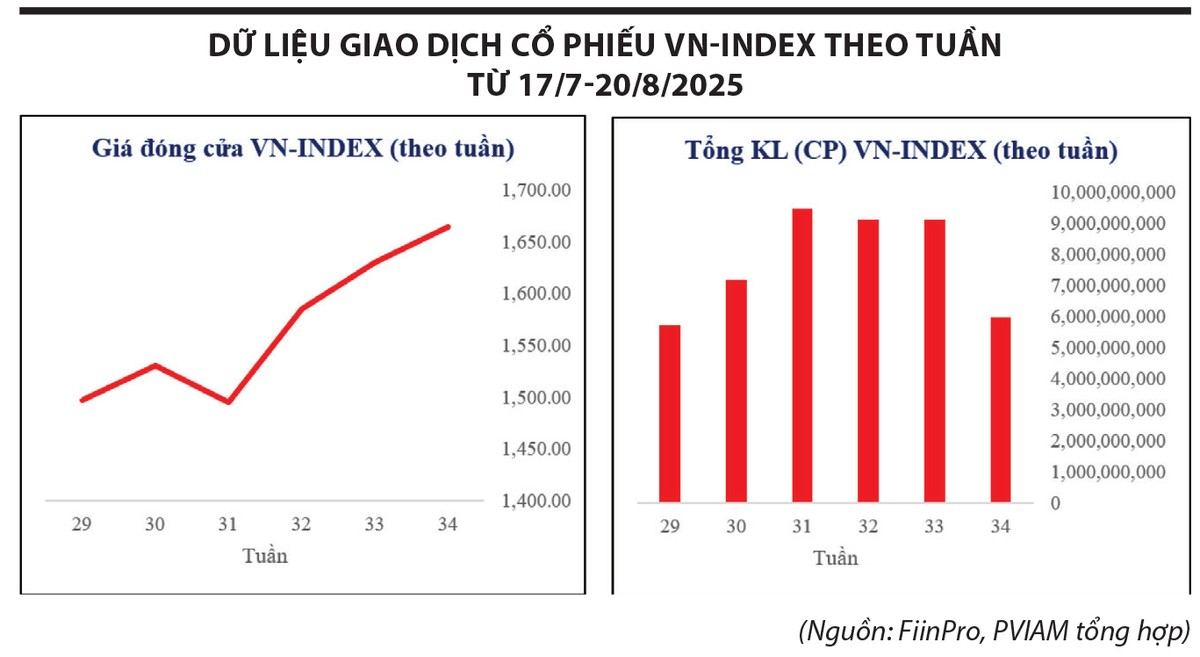 Từ góc độ kỹ thuật, VN-Index đã vượt qua vùng kháng cự quan trọng, trong khi thanh khoản bình quân từ đầu tháng 8 đến nay đạt khoảng 47.000 tỷ đồng/phiên, cao hơn gần 30% so với giai đoạn tháng 6. Đây là nền tảng khiến tâm lý FOMO gia tăng, góp phần đẩy mạnh dòng tiền vào thị trường.
