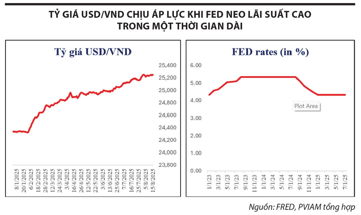 Về yếu tố bên ngoài, diễn biến tỷ giá và chính sách tiền tệ toàn cầu cũng ảnh hưởng lớn tới dòng vốn. Mặc dù tỷ giá USD/VND đã vượt mốc 26.000, phản ánh áp lực từ đồng USD mạnh lên, nhưng mức biến động của VND vẫn thấp hơn so với nhiều đồng tiền châu Á khác. Ngân hàng Nhà nước tiếp tục can thiệp linh hoạt để hạn chế rủi ro tỷ giá, trong khi Cục Dự trữ Liên bang Mỹ (Fed) phát tín hiệu có thể hạ lãi suất trong tháng 9 tới. Đây là yếu tố quan trọng hỗ trợ dòng vốn vào các thị trường mới nổi, cộng hưởng với việc ETF hút ròng và khối ngoại mua ròng hàng nghìn tỷ đồng.