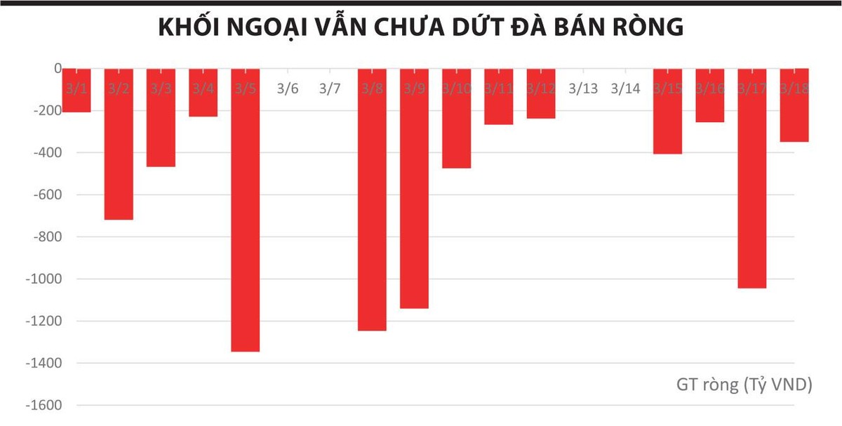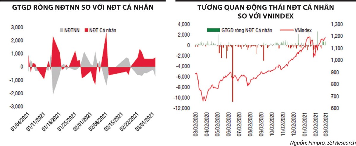 Chỉ số VN-Index vượt ngưỡng cản tâm lý 1.200 điểm trong bối cảnh khối ngoại đã có 19 phiên liên tục bán ròng. Ngược lại, theo thống kê của Fiin Trade, tính đến ngày 18/3/2021, nhà đầu tư cá nhân đã mua ròng 20 phiên liên tiếp, với tổng số mua ròng qua khớp lệnh trên sàn HOSE đạt 15.685 tỷ đồng.