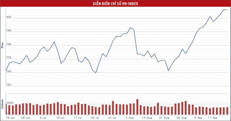 Tại thị trường nội địa, thị trường chứng khoán Việt Nam tuần qua nằm trong xu hướng tăng của khu vực, chỉ số VN-Index tăng 0,57%, VN30-Index tăng 0,65%. Nhóm ngành tăng giá mạnh trong tuần qua là dệt may, chứng khoán, dược, thép, thủy sản, cao su, bảo hiểm, điện, khí, xây dựng, trong khi các nhóm ngành yếu là đường, xi măng và bất động sản.