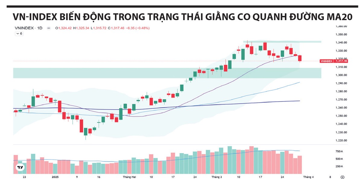 Kết tuần, VN-Index mất mốc MA20, đánh dấu tín hiệu tiêu cực nhẹ về mặt kỹ thuật. Khi đà tăng chưa có sự đồng thuận, chỉ số có khả năng cao sẽ tiếp tục rung lắc, có thể điều chỉnh về vùng hỗ trợ mạnh quanh 1.300 điểm. Tuy nhiên, đây vẫn được đánh giá là một nhịp điều chỉnh sau giai đoạn tăng nóng, chưa phải tín hiệu cho xu hướng giảm sâu.
