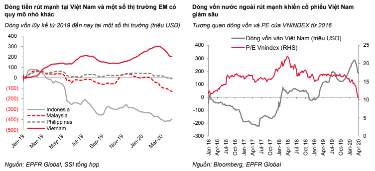 "Với dòng vốn nước ngoài, lãi suất cực thấp và thanh khoản dồi dào là những thuận lợi để quay trở lại tài sản rủi ro, trong đó có thị trường Việt Nam. Tuy nhiên, việc thay đổi cơ bản trong cấu trúc phân bổ tài sản trên phạm vi toàn cầu sẽ khó xảy ra trong một vài tháng, thậm chí một vài quý tới. Tất cả vẫn đang phụ thuộc vào khả năng kiểm soát dịch bệnh một biến số phi kinh tế và nằm ngoài khả năng dự báo của các nhà phân tích", SSI Research đánh giá.