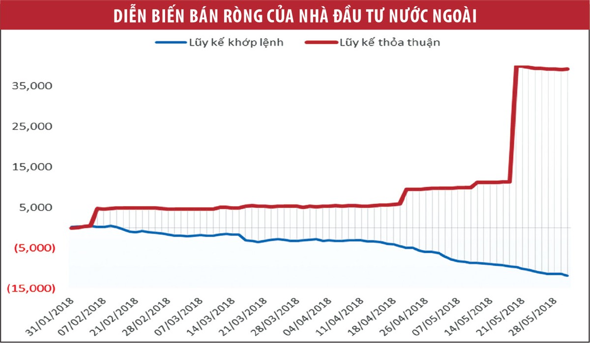 Theo phân tích của Công ty Chứng khoán MB (MBS), dòng vốn nước ngoài đã rút ra rất mạnh khỏi các quốc gia có cán cân thương mại thâm hụt và tỷ giá dễ bị biến động như Thổ Nhĩ Kỳ, Argentina, Indonesia, Brazil, Ấn Độ… Diễn biến này đã ảnh hưởng đến thị trường chứng khoán Việt Nam trong tháng 4 - 5 vừa qua. Trong 5 tháng đầu năm, nhà đầu tư nước ngoài đã bán ròng khoảng 11.700 tỷ đồng khớp lệnh trên sàn với các cổ phiếu trụ cột bị bán mạnh như VIC, VNM, VCB, HPG…