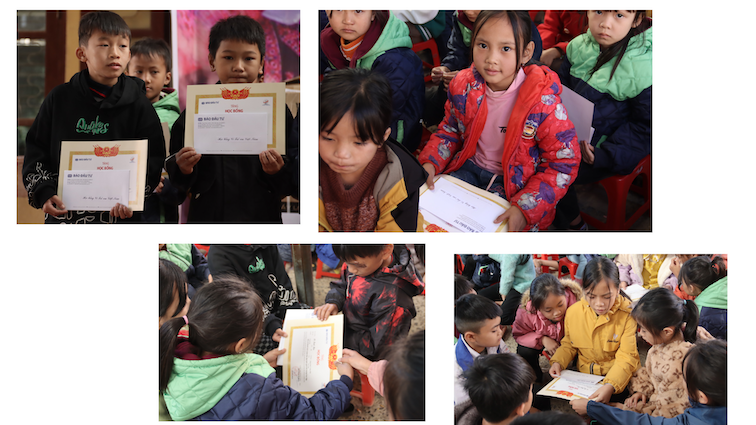 Bên cạnh các thiết bị, đồ dùng học tập, sinh hoạt thiết thực, chương trình đã trao suất học bổng tới 37 em học sinh có hoàn cảnh khó khăn. Phần lớn gia đình các em thuộc diện hộ nghèo, khó khăn về kinh tế, bố mẹ đi làm xa ở với ông bà hay một số học sinh bố mẹ đi làm xa anh em tự nuôi nhau… nhưng vươn lên học tập, đạt xếp loại hoàn thành xuất sắc, hoàn thành tốt trong các năm học.