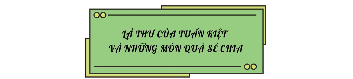 Mình tên là Tuấn Kiệt, mình học lớp 4A7 Trường Nghĩa Đô. Mình còn 20 quyển vở mới mua, mình gửi cho các bạn 15 quyển vở, hai chiếc bút chì, một chiếc thước kẻ (đều là đồ mới của mình). Mình xin ba mẹ mình 100.000 đồng từ tiền tiêu vặt của mình, để gửi cho các bạn. Mình cũng muốn gửi thêm nhưng mình không có nhiều tiền. Các bạn cố lên nhé!