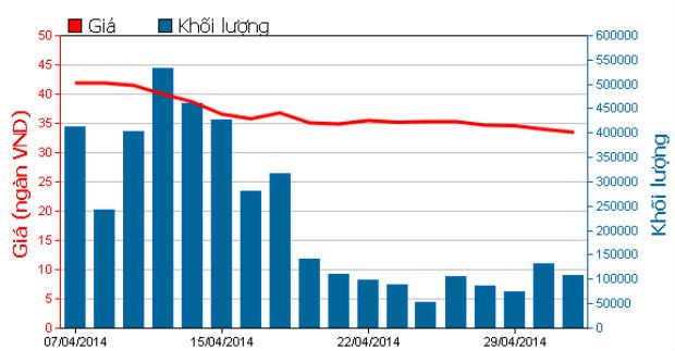 Trong 1 tháng qua, cổ phiếu DPM đã liên tục sụt giảm, từ 43.600 đồng (giá chốt phiên 3/4) xuống còn 33.500 đồng (giá chốt phiên 6/5), tương ứng giảm 23,17%. Bình quân mỗi phiên giao dịch gần 2,2 triệu đơn vị, giá trị 84,87 tỷ đồng.