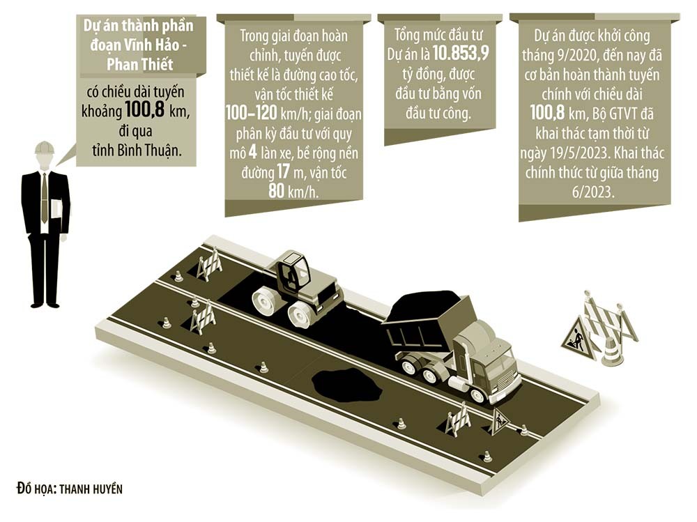 Cần phải nói thêm rằng, tại thời điểm Kiểm toán Nhà nước vào cuộc, Dự án thành phần đầu tư xây dựng đoạn Vĩnh Hảo - Phan Thiết đã đưa vào khai thác được 3 tháng. Từ đó đến nay, chủ đầu tư và các đơn vị thi công đang hoàn thiện các hạng mục đường gom, hoàn trả đường công vụ và một số công trình phát sinh nhỏ khác.