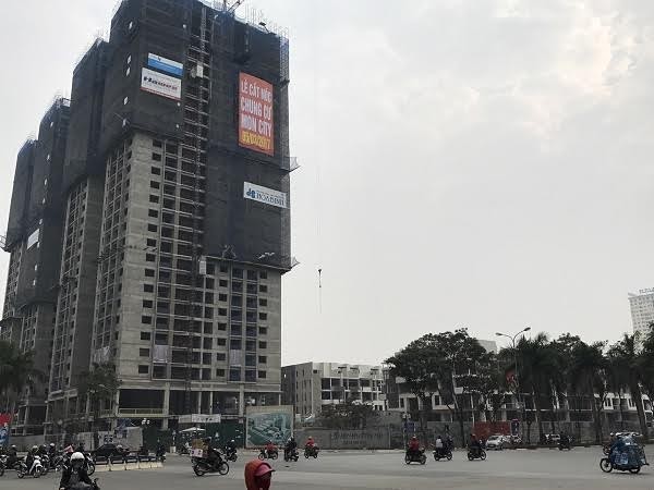 Mon City đồ sộ nhìn từ ngã tư Hàm Nghi - Nguyễn Cơ Thạch trong ngày lễ cất nóc